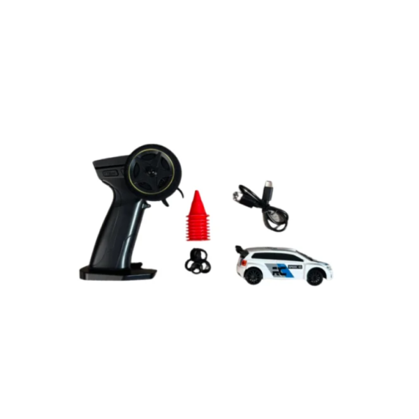 Стильна біла радіокерована машинка у масштабі 1:43 з контрастними синьо-сірими елементами дизайну та спортивним антикрилом. Маневрена, швидка й легка в керуванні, вона подарує драйв як дітям, так і дорослим.